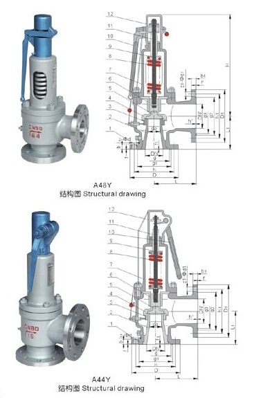 A48Y帶扳手彈簧全啟式安全閥適用于工作溫度≤350℃的蒸汽、空氣等介質的設備和管路上。