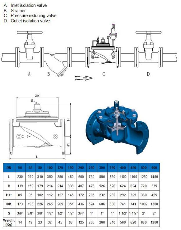 When the pressure difference between the inlet and outlet is too large, it is recommended to use multiple pressure relief valves, multi-stage pressure relief to protect the valves and pipes; specific can consult the factory.