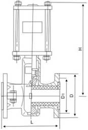 GJ641X pneumatic pipe clamp valve consists of pneumatic device, left and right valve body, rubber pipe sleeve, large and small valve stem, upper and lower gate, guide column and other parts. When the handwheel is rotated, the large and small stem simultaneously drives the upper and lower brake plates, compresses the sleeve, closes, reverses and opens, thus the brake plates reciprocate between the guide posts to complete the valve opening and closing work. In addition, due to the rubber sleeve bearing force, so when switching, the operator rotating the handwheel as long as they feel a moderate amount of conflict, have reached the opening and closing pole, do not try or more people to assist, prohibit the use of other tools to open and close.