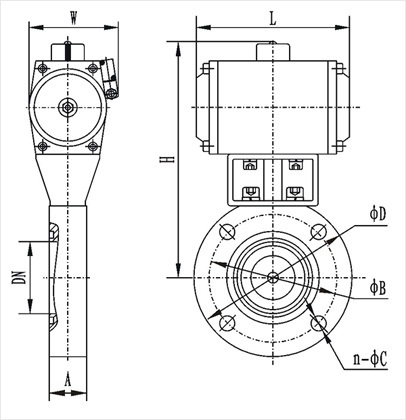型號 | 通徑(DN) | ΦD | ΦB | H | A | L | W | n-ΦC |