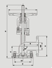 角式放料閥閥體為90度角,進出口法蘭大小相同。閥體內腔裝有耐沖刷、耐腐蝕的密封圈,在開啟閥門瞬間,可以保護閥體不被介質沖刷、腐蝕,并對密封圈子進行特種處理,使表面硬度達到HRC25~40。閥座密封面與閥瓣密封面均堆焊有司太立硬質合金,密封副采用線密封,保證密封,保證密封的可靠性,并可防止結疤。閥瓣斜面于閥座角形成線密封,閥瓣閥瓣啟閉時有手輪帶動銅螺母,螺母帶閥桿(上下運動有夾板定向,閥桿不會出現旋轉)向反應釜內伸。底部法蘭可拆卸,焊接到反應釜底部(注意:閥門需要是關必狀態拆卸法蘭)。